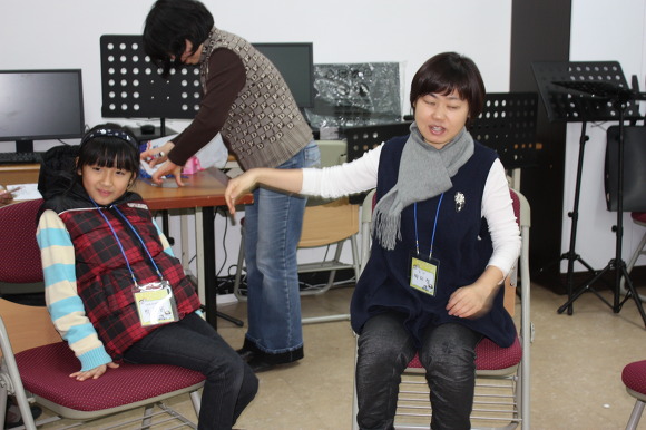 1부 첫 시간에는 아이들이 올 때마다 본인의 이름을 적게 하면서 얼굴도 익히고 자기를 표현해 보도록 했습니다. 처음 만난 아이들이라 부담을 주지 않기 위해서 게임을 위주로 친교를 했습니다. 마음을 열고 게임의 규칙에 따라 재미있게 놀았습니다. “당신은 이웃을 사랑하십니까?” 하는 질문을 하면서 서로 사귐을 가졌습니다. 모인 아이들이 12명 정도 되는데 연령층이 유치부에서부터 초등부까지 있어서 눈높이를 맞추기에 어려움이 있었으나 놀이를 통하여 나이의 장벽을 허물었습니다.