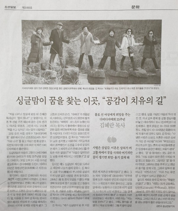 조선일보에 실린 다비다자매회 관련 기사 페이지 정보 작성자 kim 작성일19-02-25 14:10 조회4,642회 댓글0건 관련링크 이전글 다음글 목록 본문 창립 25주년에 조선일보 김한수 기자의 인터뷰 내용이 조선일보에 2회에 걸쳐 기사회 되었다. "싱글맘이 꿈을 찾는 이곳 " 외 1 이전글 다음글 목록